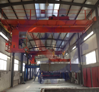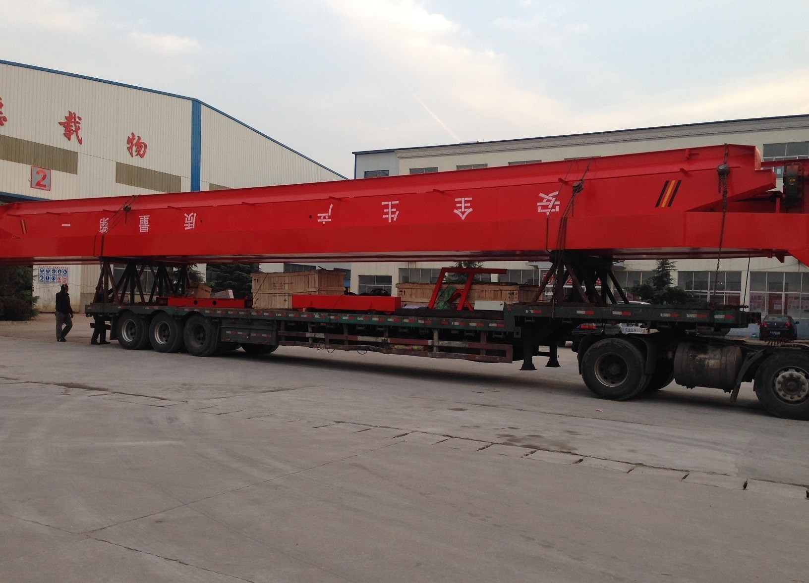 是橋架兩端通過運行裝置直接支撐在高架軌道上的橋架型起重機。它由橋架(包括主梁和端梁)、起重小車、大車運行機構(gòu)和電氣控制系統(tǒng)等部分組成。起重小車上裝有起升機構(gòu)和小車運行機構(gòu)在橋架主梁上沿小車軌道橫向運行;起重機沿廠房或露天貨場的高架軌道縱向運行,其掛梁方向分為與主梁平行和與主梁垂直兩種,并在掛梁下方裝有電磁吸盤,通過電磁吸盤完成物料搬運工作。