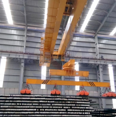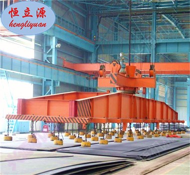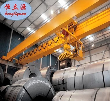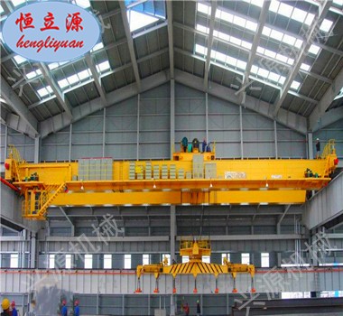 適用干冶金工廠在室內(nèi)或露天的固定跨間較繁重地裝卸及搬運(yùn)具有磁性的黑色金屬制品與材料(如鋼錠、型鋼、生鐵塊)在機(jī)械廠。庫(kù)房中也常有來(lái)搬運(yùn)鋼料、鐵塊、廢鐵、廢鋼、鐵屑等物料。