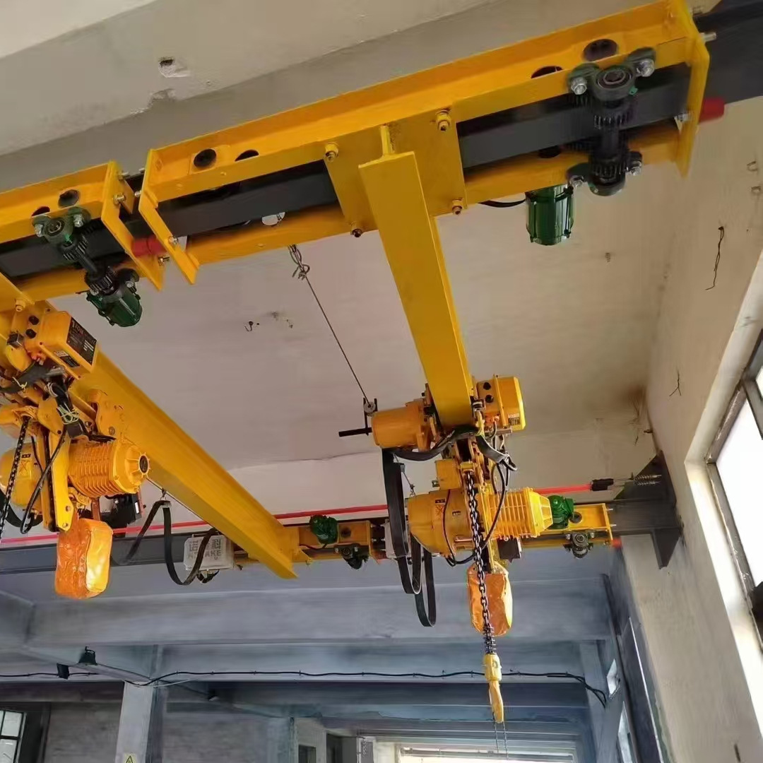 與CD?、MD?型電動(dòng)葫蘆配套使用,構(gòu)成有軌運(yùn)行的單梁起重機(jī)。該懸掛起重機(jī)的運(yùn)行軌道使用用工字鋼,主梁兩端懸掛于工字鋼下方前后運(yùn)行,是小噸位起重設(shè)備。